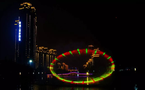 华灯初上,商都广场内的“算盘”雕塑、运河两岸的万家灯火与高低起伏的喷泉、绚丽的灯光、变幻的场景组成了一幅璀璨画卷。正在现场指导施工的技术人员告诉记者,当初设计师看到运河边上有一座大型“算盘”雕塑,就巧妙地设计了“如意”的水景造型。透过变幻无穷的灯光和水幕,依稀可以看到“算盘”的身影。